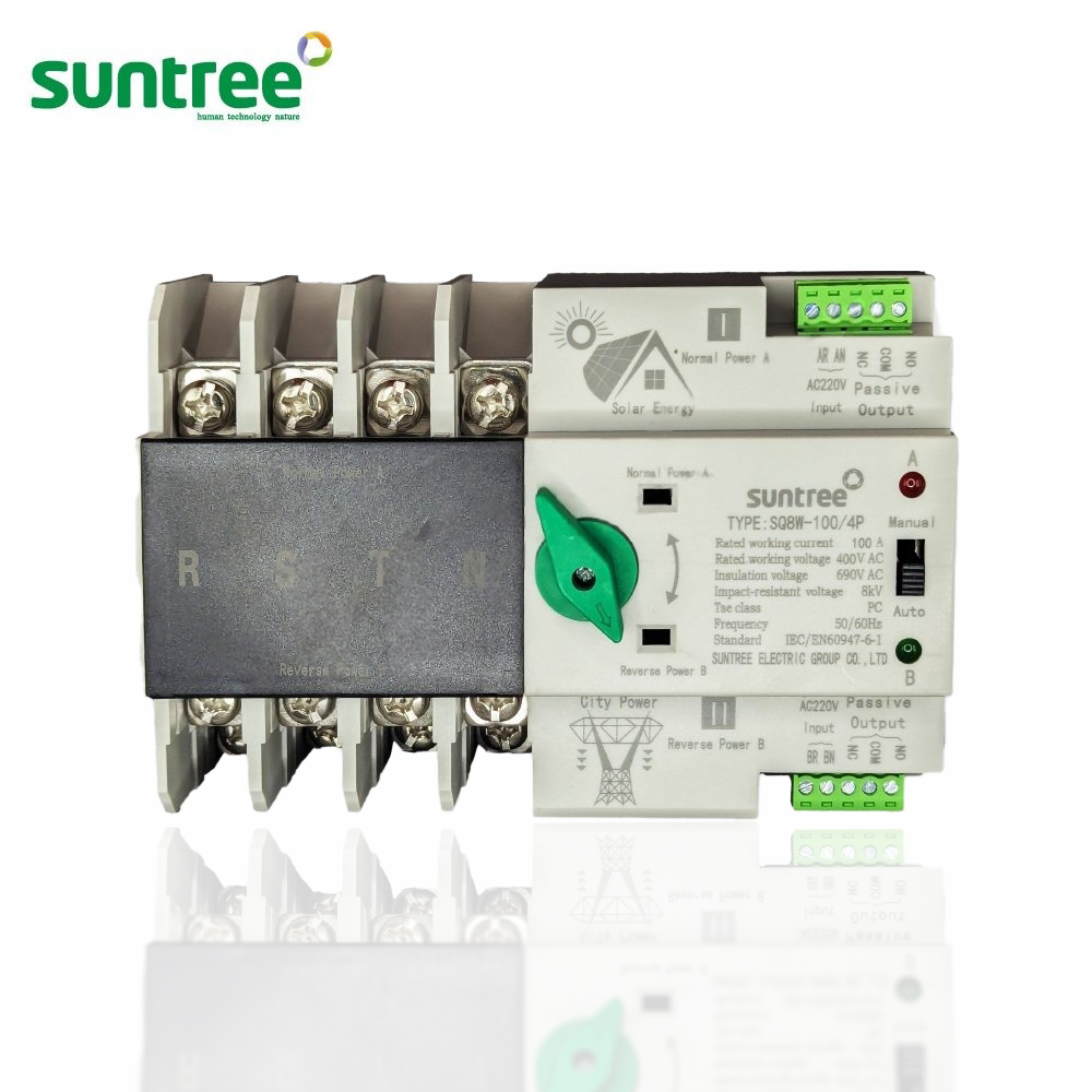 Công tắc chuyển mạch tự động , dòng định mức 100A, dùng cho hệ thống điện mặt trời . Đảm bảo an toàn và duy trì nguồn điện liên tục cho các tải quan trọng.