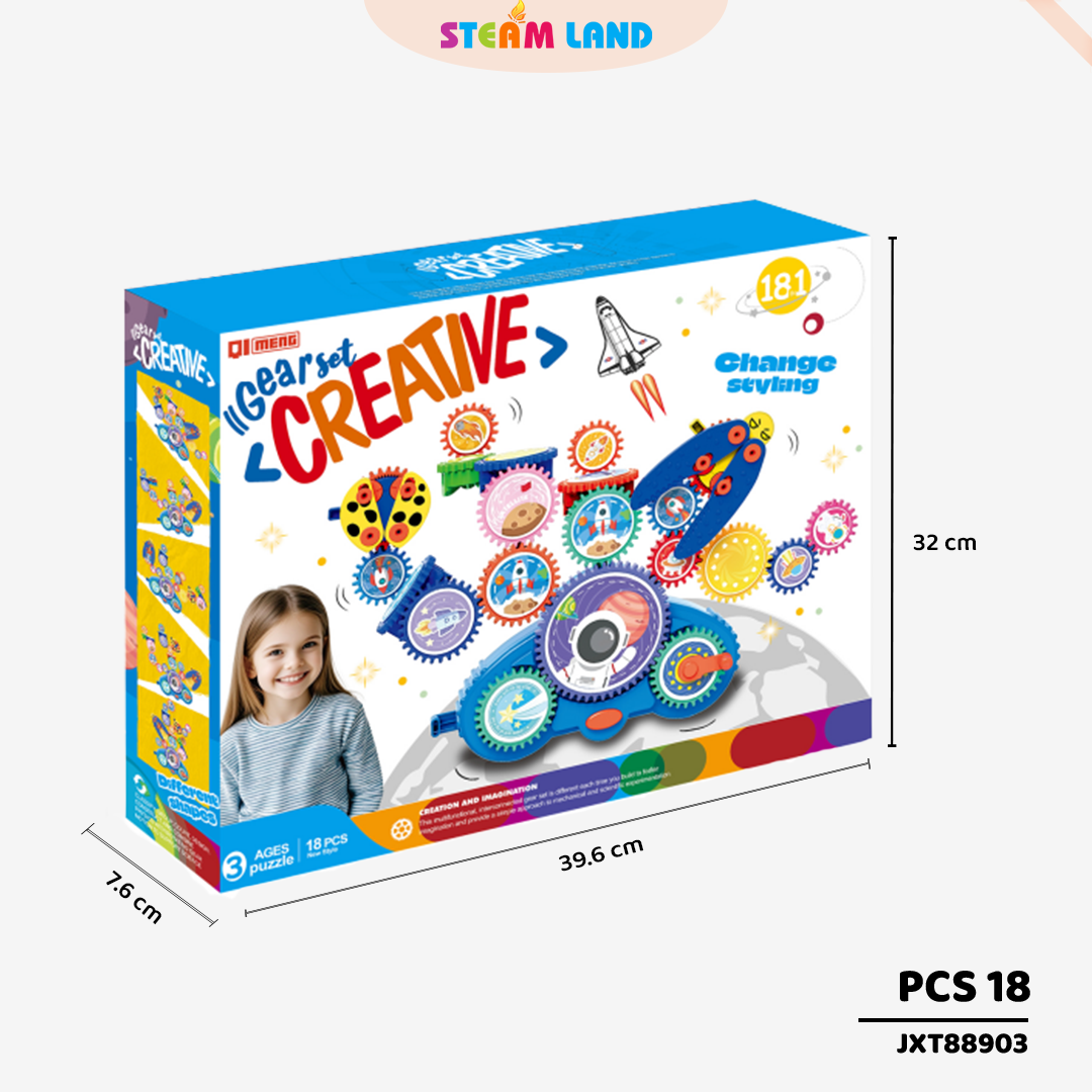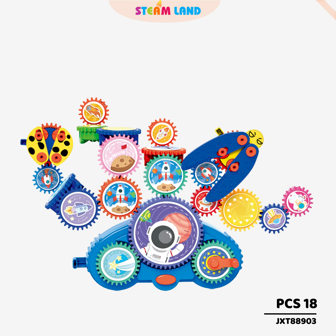 Bộ đồ chơi lắp ráp cơ bản với bánh răng chuyển động bằng động cơ điện, giúp bé tìm hiểu cơ chế hoạt động của máy móc.