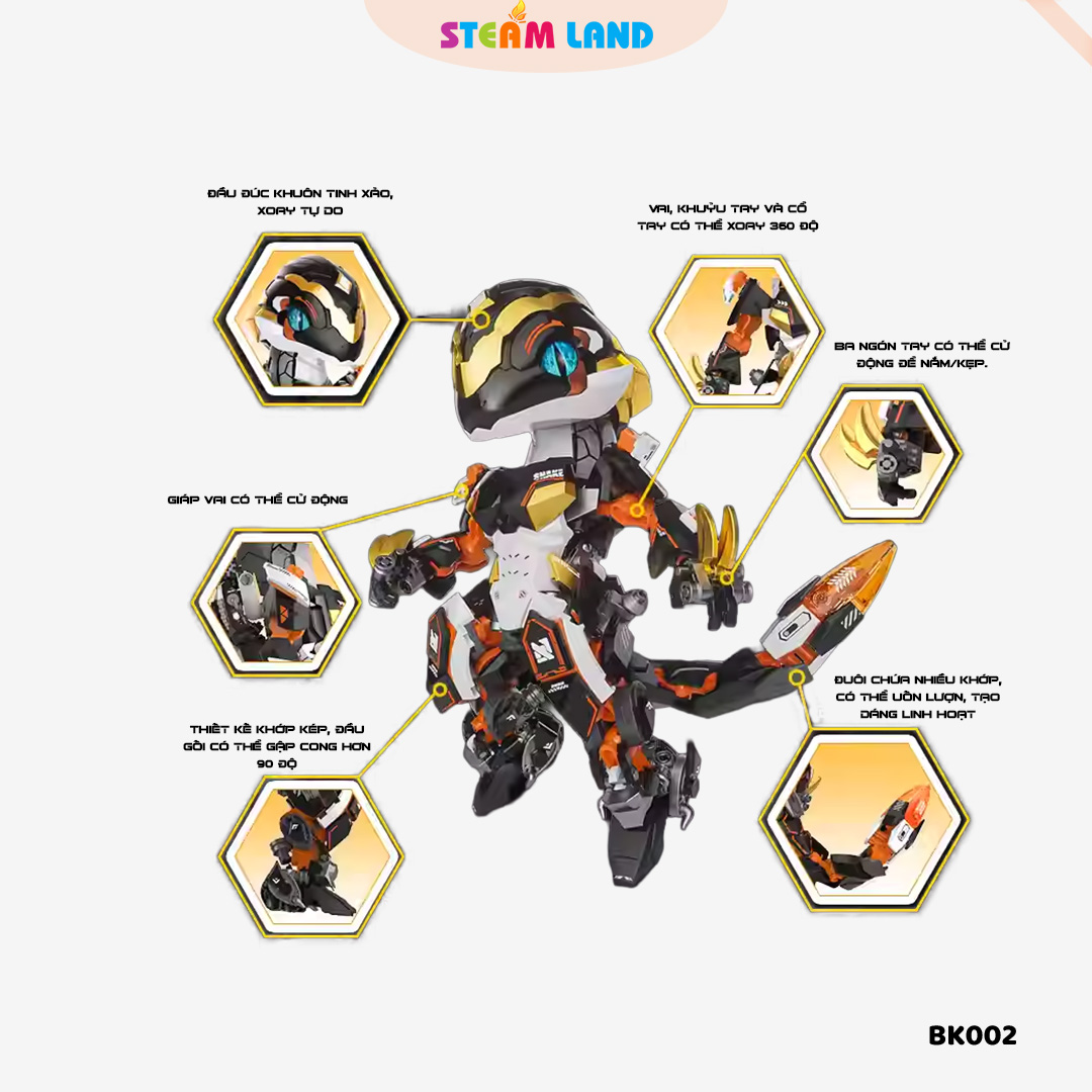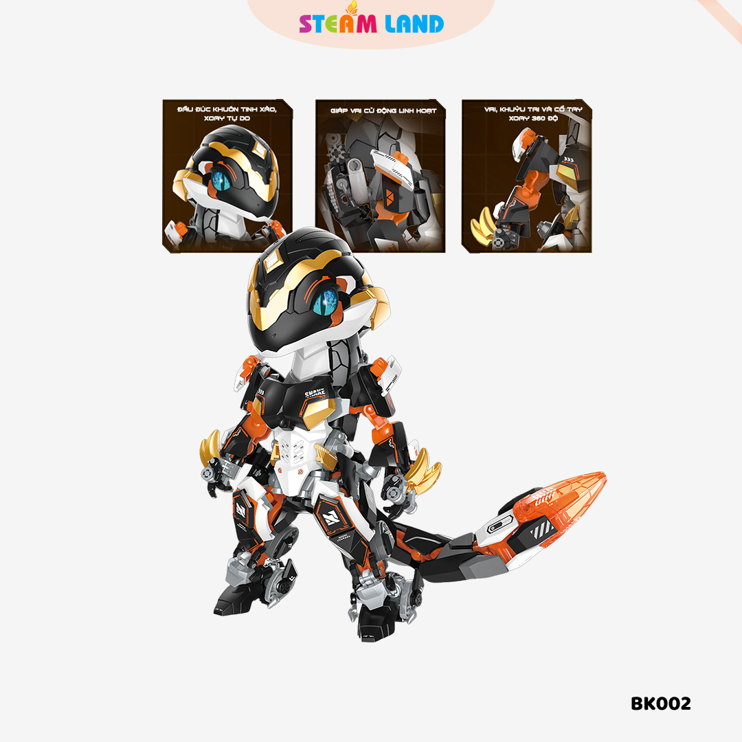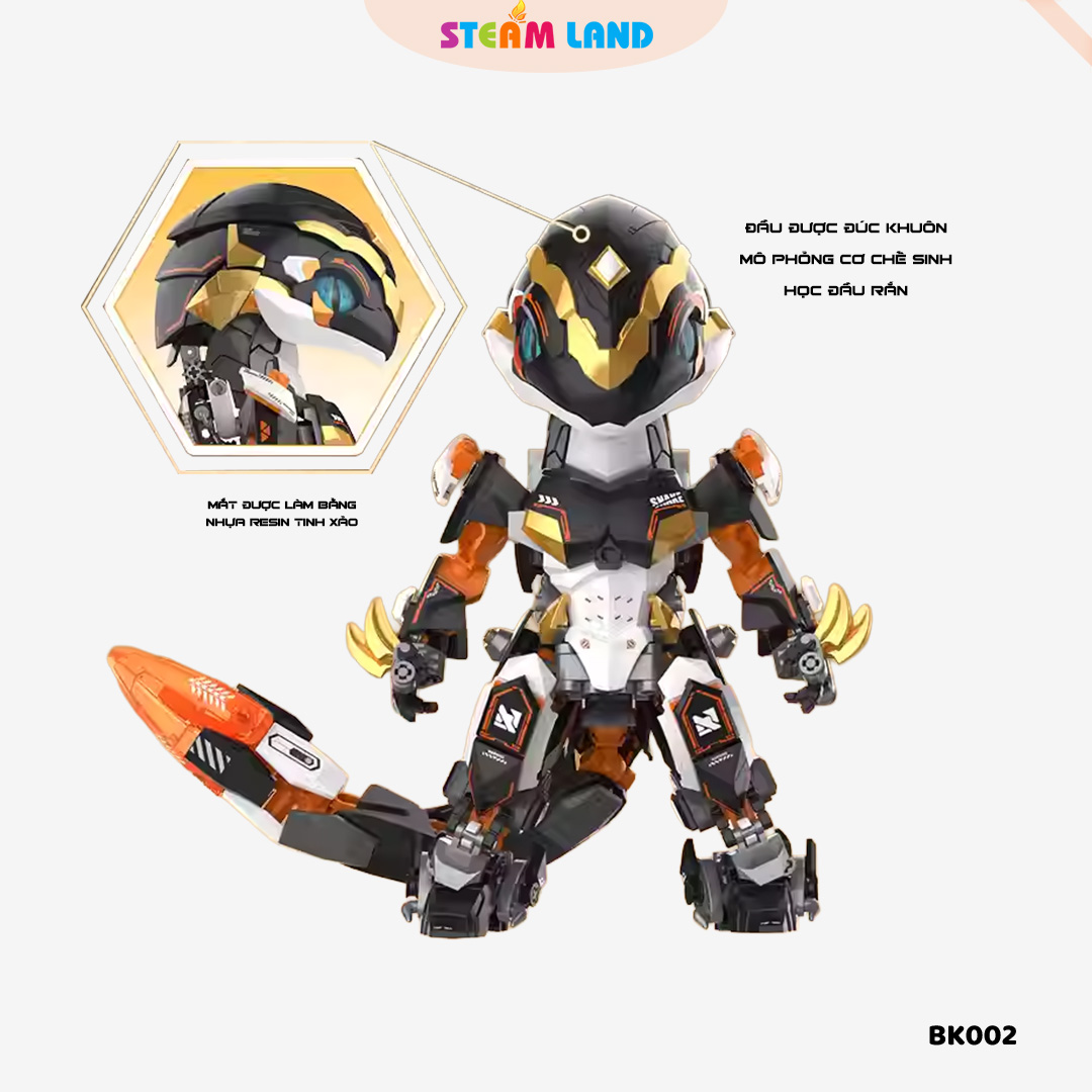 Mô hình mech rắn chiến giáp thiết kế mạnh mẽ, chi tiết khớp linh hoạt, màu sắc sắc nét.