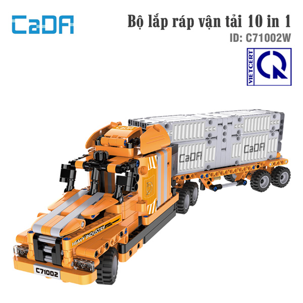 Bộ láp ráp vận tải 10 trong 1 CADA C71002W có động cơ pin xạc điều khiển, 634 chi tiết có thể lắp thành 10 cách khác nhau. Đối tượng: 6+. Đồ chơi phát triển trí tuệ và xả stress hiệu quả.