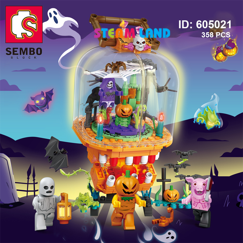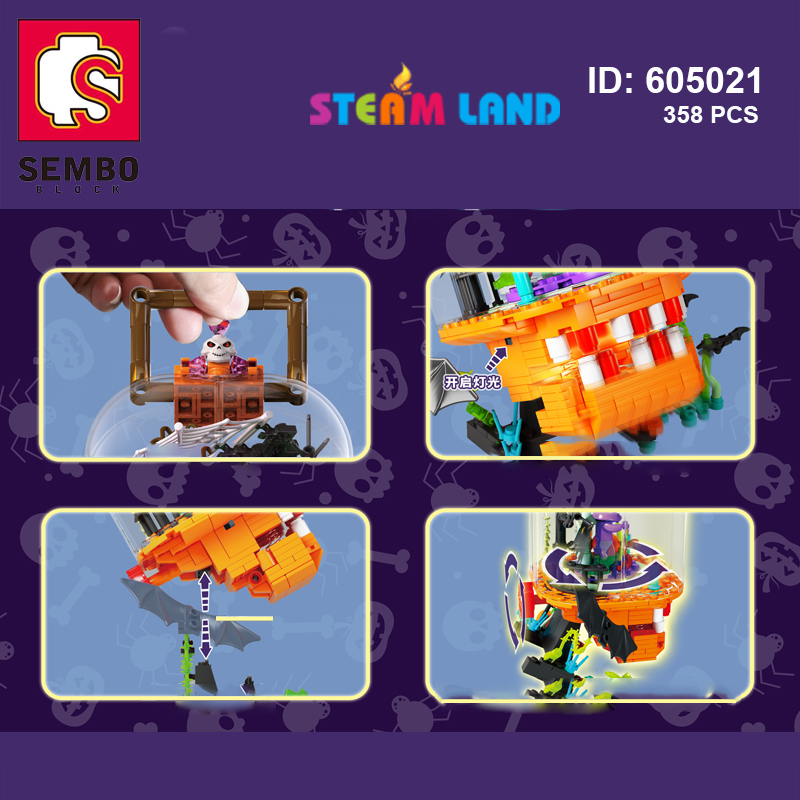 Bộ lego Halloween kì bí có đầy đủ các nhân vật như bí ngô, zombie, nhện,…giúp bé dễ dàng tạo nên một khung cảnh bí ẩn, đầy lôi cuốn.