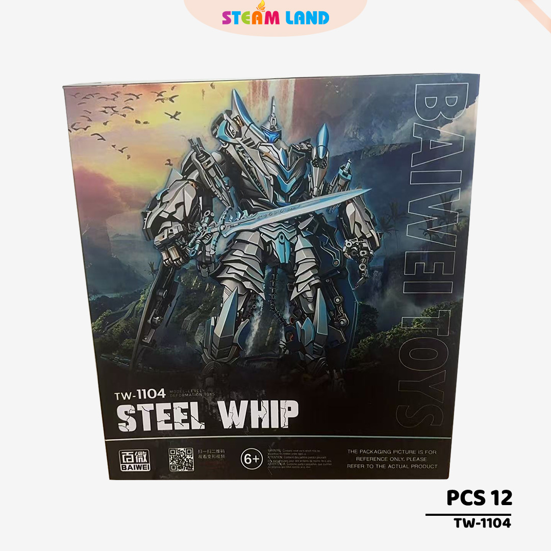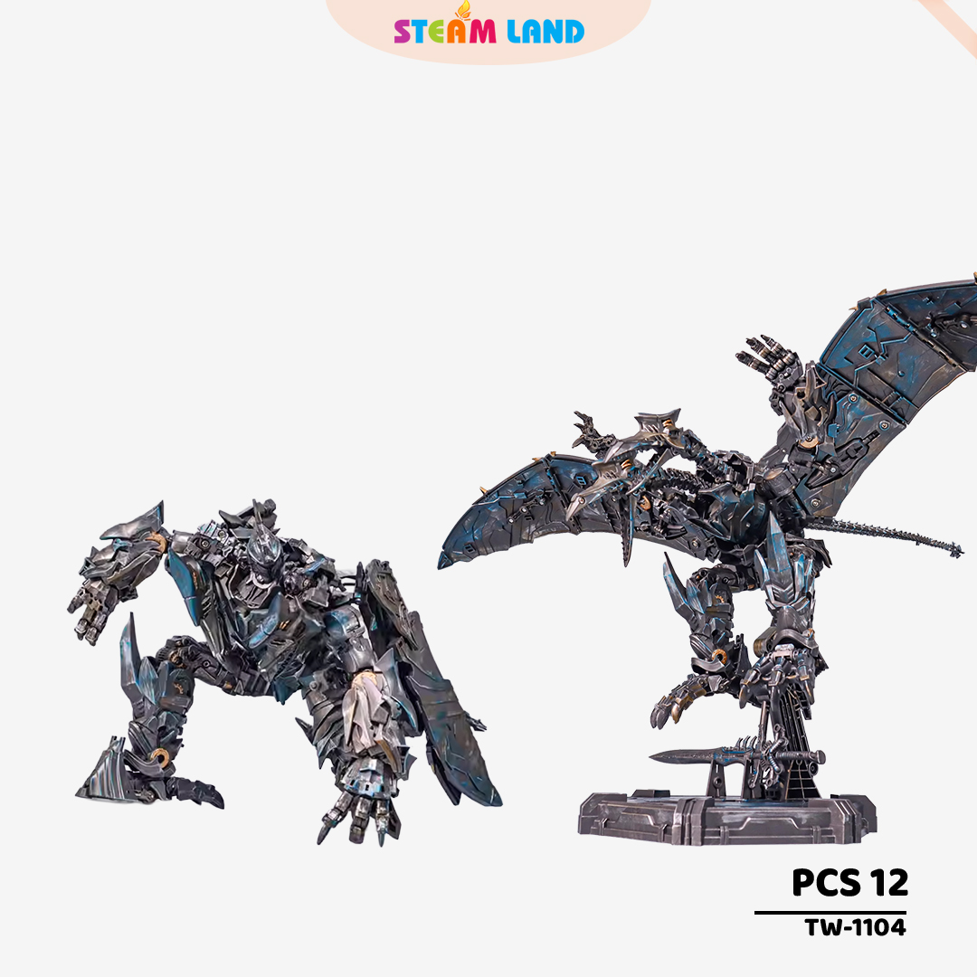BAIWEI TW-1104 là món đồ chơi biến hình cực chất với khả năng hóa thân thành khủng long bay hai đầu độc đáo. Thiết kế mạnh mẽ, chi tiết giáp sắc nét cùng tông màu bạc tạo nên diện mạo oai phong.