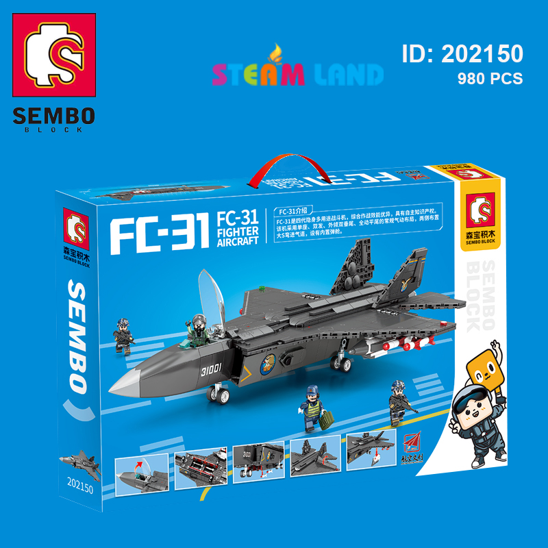 Đồ chơi lắp ráp Máy bay chiến đấu hạng nhẹ FC-31 SEMBO 202150 được thiết kế dựa trên nguyên mẫu máy bay cùng tên. Trong quá trình lắp ráp và chơi cùng bộ đồ chơi giúp bé sử dụng kết hợp giác quan