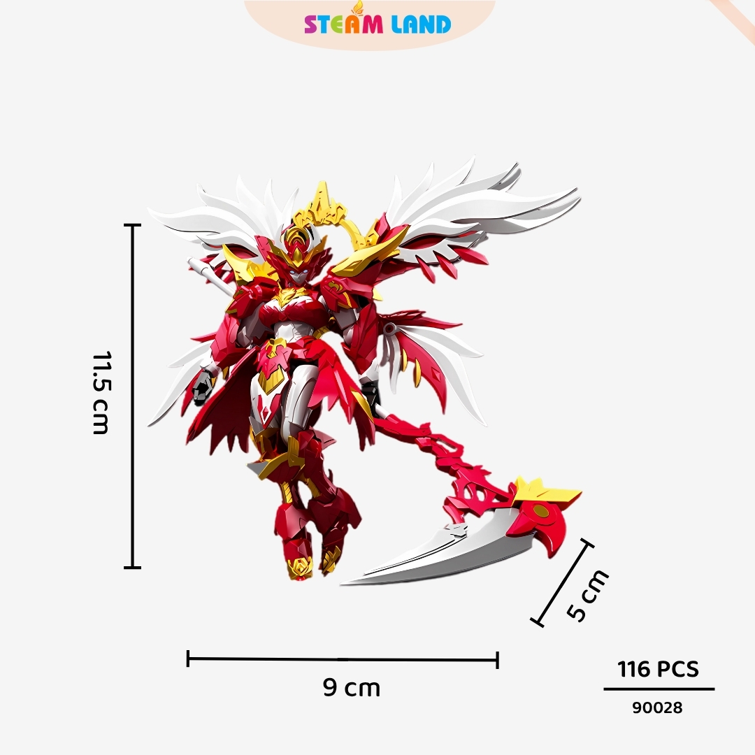 Khám phá ROSEFINCH – chiến binh lửa rực rỡ với thiết kế mô phỏng Huyền Điểu phương Đông. Bộ model kit tinh xảo với màu đỏ đặc trưng, tạo nên khí chất mạnh mẽ và cao quý cho mọi bộ sưu tập robot