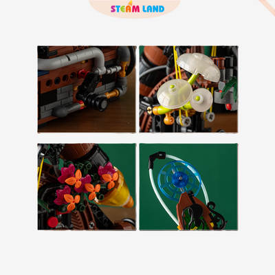Khối lắp ráp Đom Đóm Steampunk – mô hình sáng tạo mang đậm sắc thái thiên nhiên với cánh rừng rậm rạp và côn trùng phát sáng, khơi gợi trí tưởng tượng và niềm yêu thích khám phá thế giới tự nhiên.