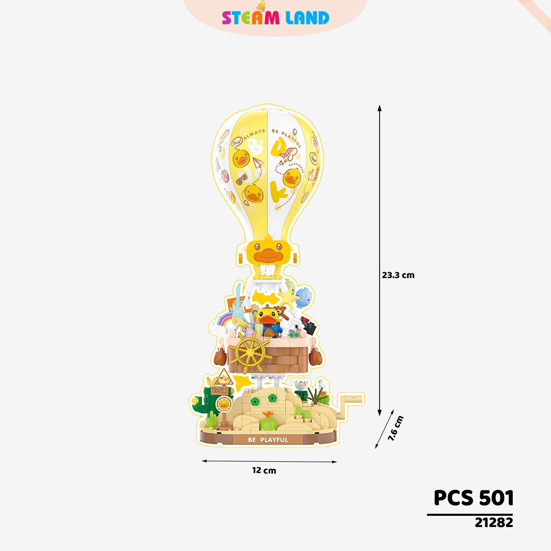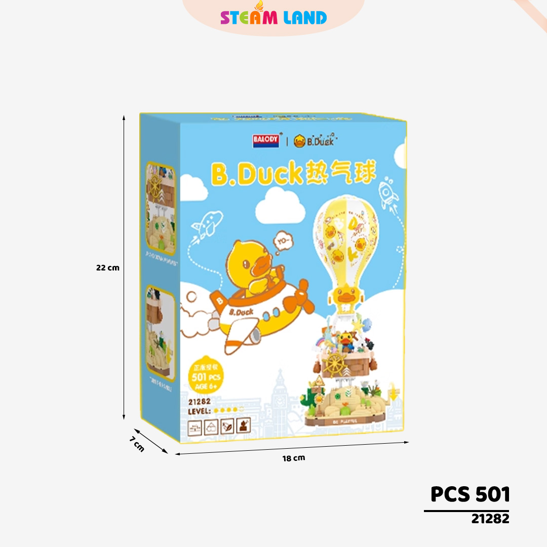 Khinh khí cầu B-Duck rực rỡ và vui nhộn, mang phong cách đáng yêu đặc trưng. Bộ lắp ráp giúp người chơi vừa giải trí vừa tạo nên mô hình trưng bày đầy màu sắc.