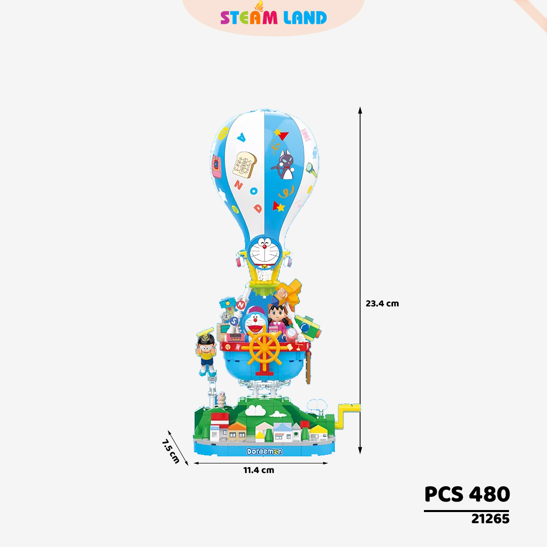 Bộ mô hình khinh khí cầu Doraemon bay bổng và đáng yêu, kết hợp sắc xanh đặc trưng và chi tiết tinh tế. Sản phẩm vừa lắp ráp vừa trưng bày cực đẹp.