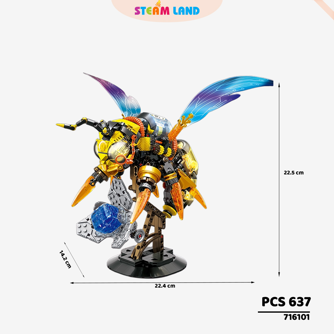 Mô hình ong cơ khí độc đáo với cánh và khớp linh hoạt, tái hiện sinh động dáng vẻ robot côn trùng. Bộ lắp ráp gồm nhiều chi tiết tinh xảo, phù hợp cho người yêu công nghệ và sáng tạo.