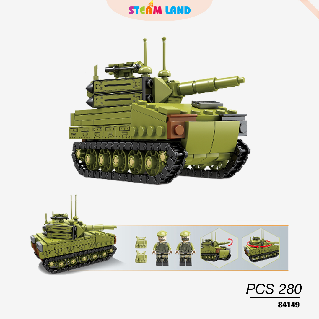 Lắp ráp xe tăng KAZI-84149 mang phong cách quân sự hiện đại, từng mảnh ghép mở ra trận địa mini sống động. Xe tăng mạnh mẽ, tháp pháo xoay linh hoạt, giúp bé thỏa sức khám phá.