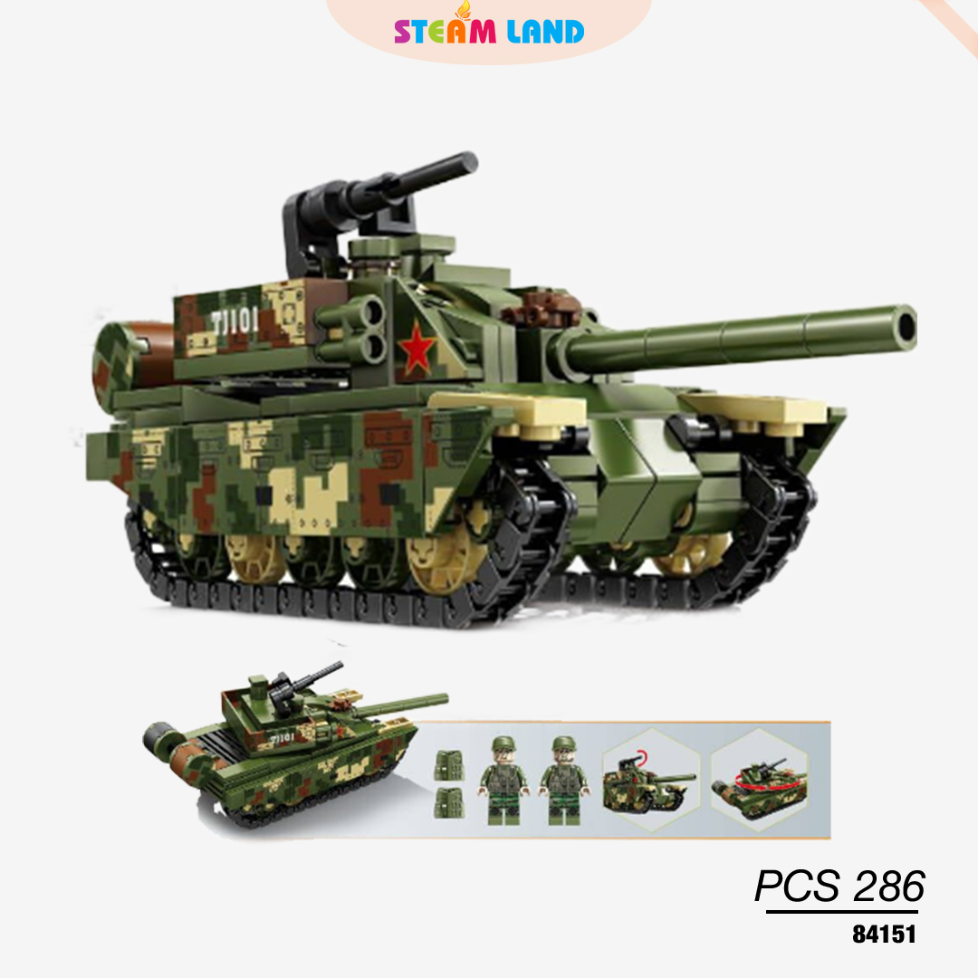 KAZI-84151 mang đến trải nghiệm lắp ráp xe tăng sống động với thiết kế ngụy trang mạnh mẽ, tháp pháo xoay linh hoạt, nhiều mảnh ghép thử thách tư duy các bé