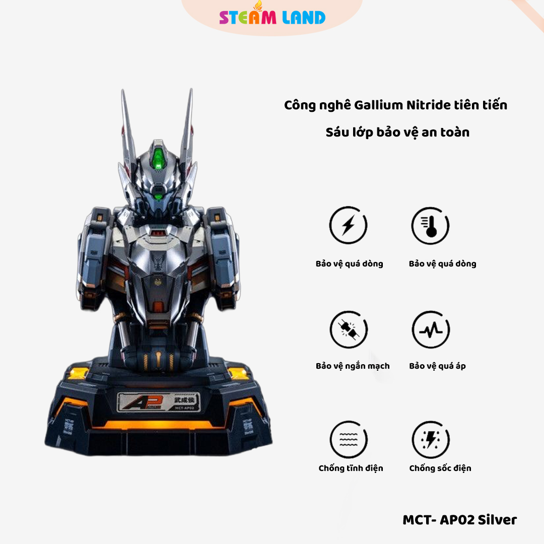 Trạm sạc USB Marquis of Wucheng ver 2.0 MCT-AP02 Silver sở hữu thiết kế robot bạc sang trọng, công nghệ sạc nhanh và hệ thống bảo vệ an toàn toàn diện.