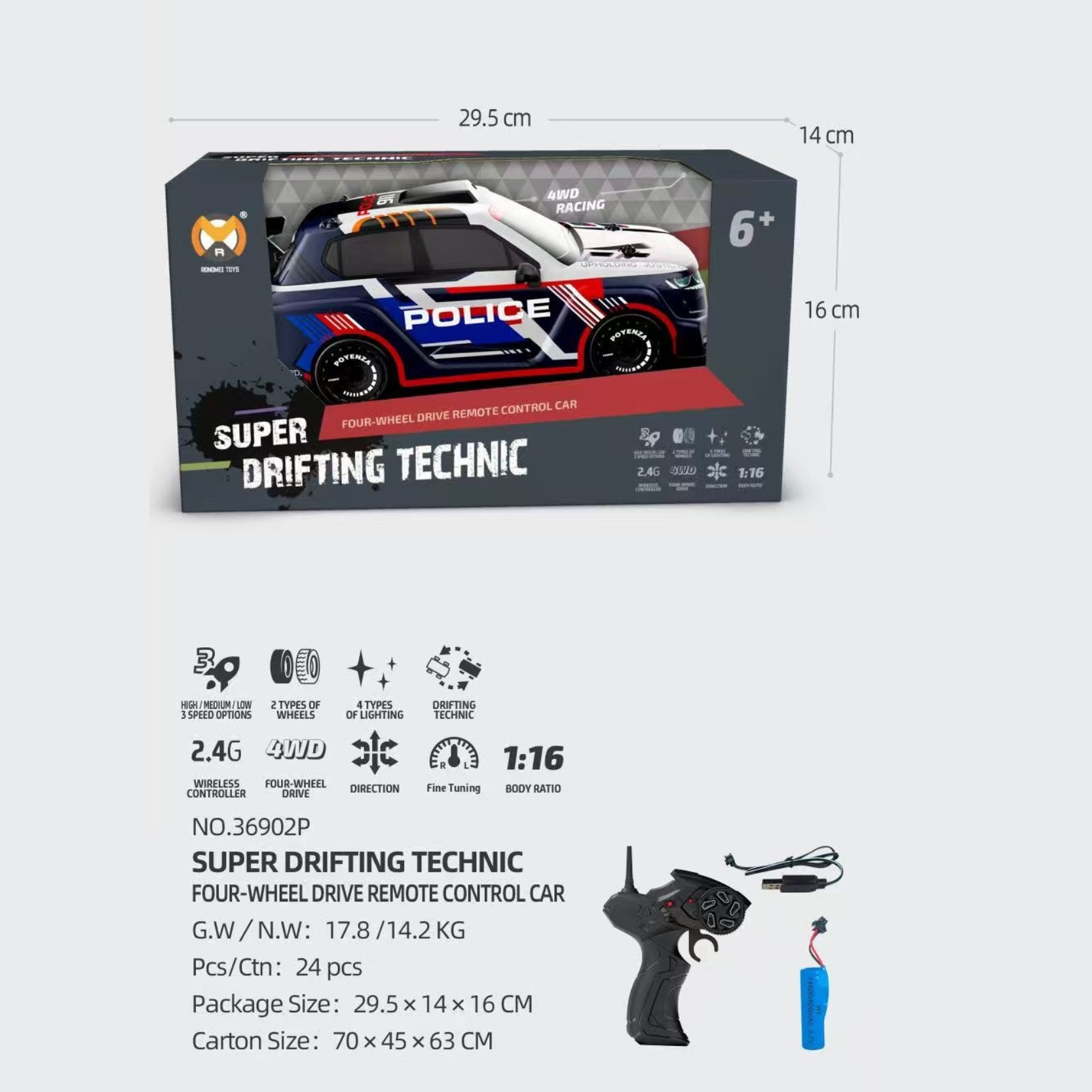 Chinh phục mọi địa hình với xe đua RONGMEI-36902P tỷ lệ 1:16 – Thiết kế 2 cầu dẫn động mạnh mẽ, bánh lớn bám đường tốt, tốc độ cao, phù hợp cho cả trẻ em lẫn người chơi đam mê mô hình xe điều khiển.