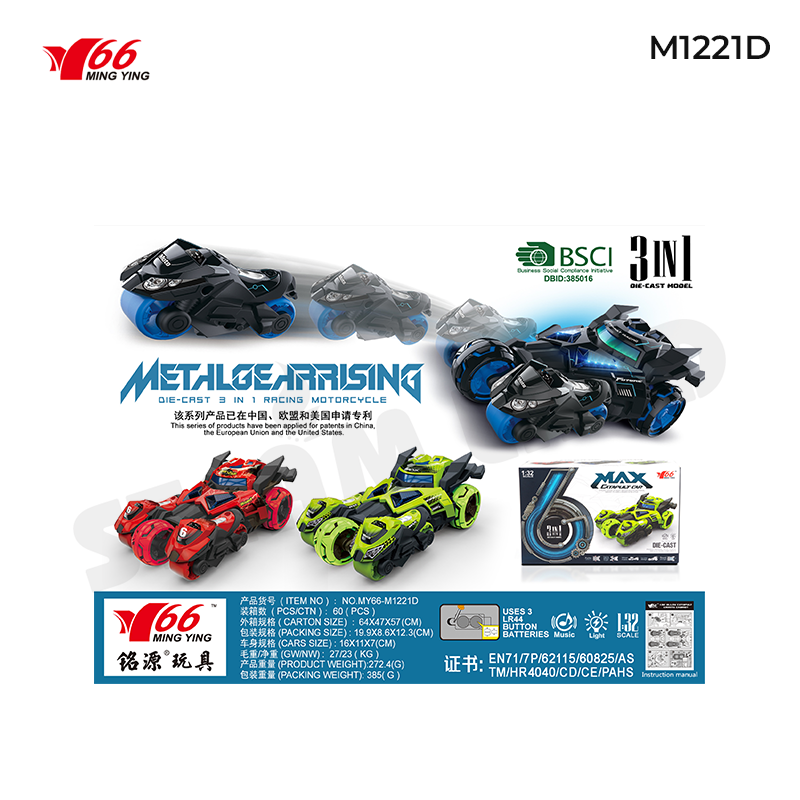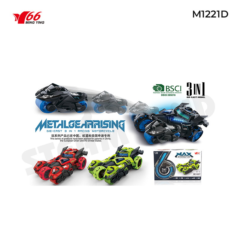 Xe hợp kim tỷ lệ 1:32 kèm mô tô 3 in 1 - MY66-M1221D là một món quà tuyệt vời cho trẻ em, kích thích trí tưởng tượng và sự sáng tạo, đồng thời mang lại giờ phút vui chơi lành mạnh và bổ íc