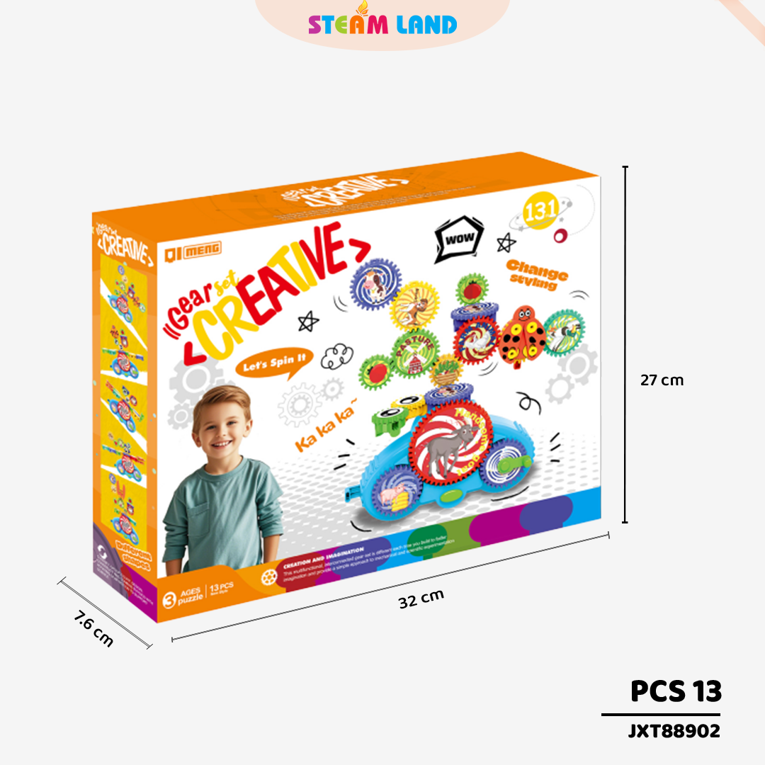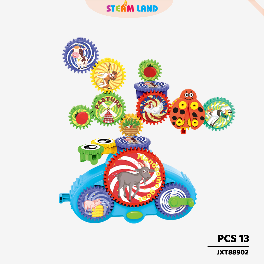 Bộ đồ chơi lắp ráp cơ bản với bánh răng chuyển động bằng động cơ điện, giúp bé tìm hiểu cơ chế hoạt động của máy móc.