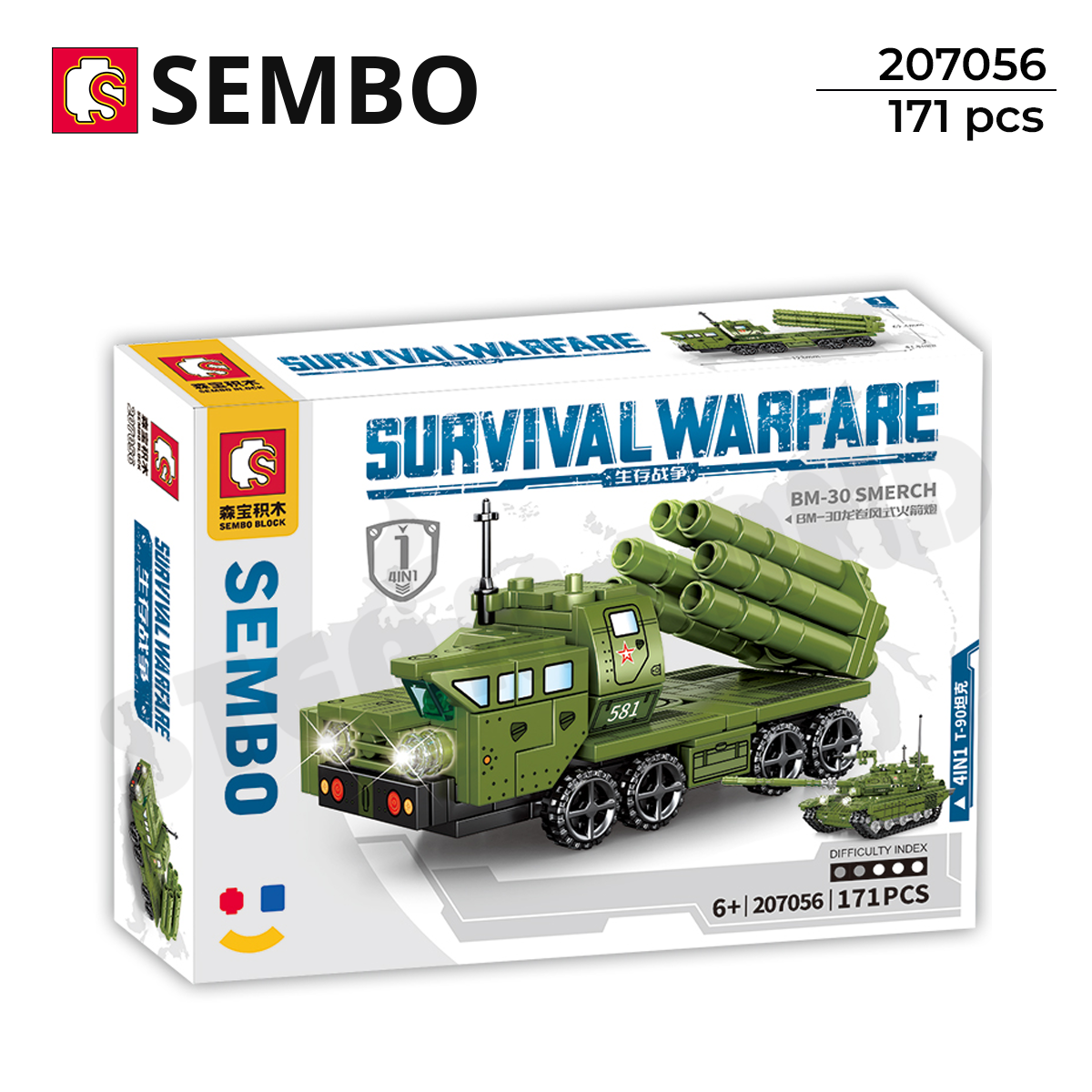 Bộ Lắp Ráp Tên Lửa Tự Hành Smerch BM-30 – SEMBO 207056 với độ khó trung bình mang đến cơ hội để trẻ rèn luyện trau dồi kĩ năng giao tiếp, kĩ năng thuyết trình