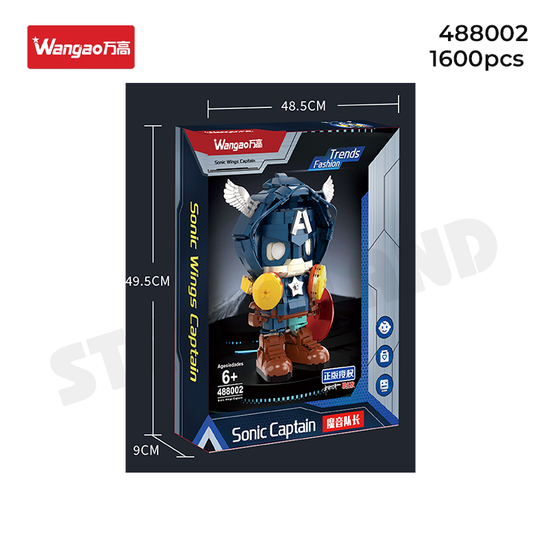 Bộ Lắp Ráp Mô Hình Nhân Vật Đội Trưởng Mỹ Marvel - WANGAO 488002 tái hiện lại hình ảnh Captain America trong vai trò thủ lĩnh bất khuất, kiên định nhưng cũng không kém phần đáng yêu với tạo hình chib